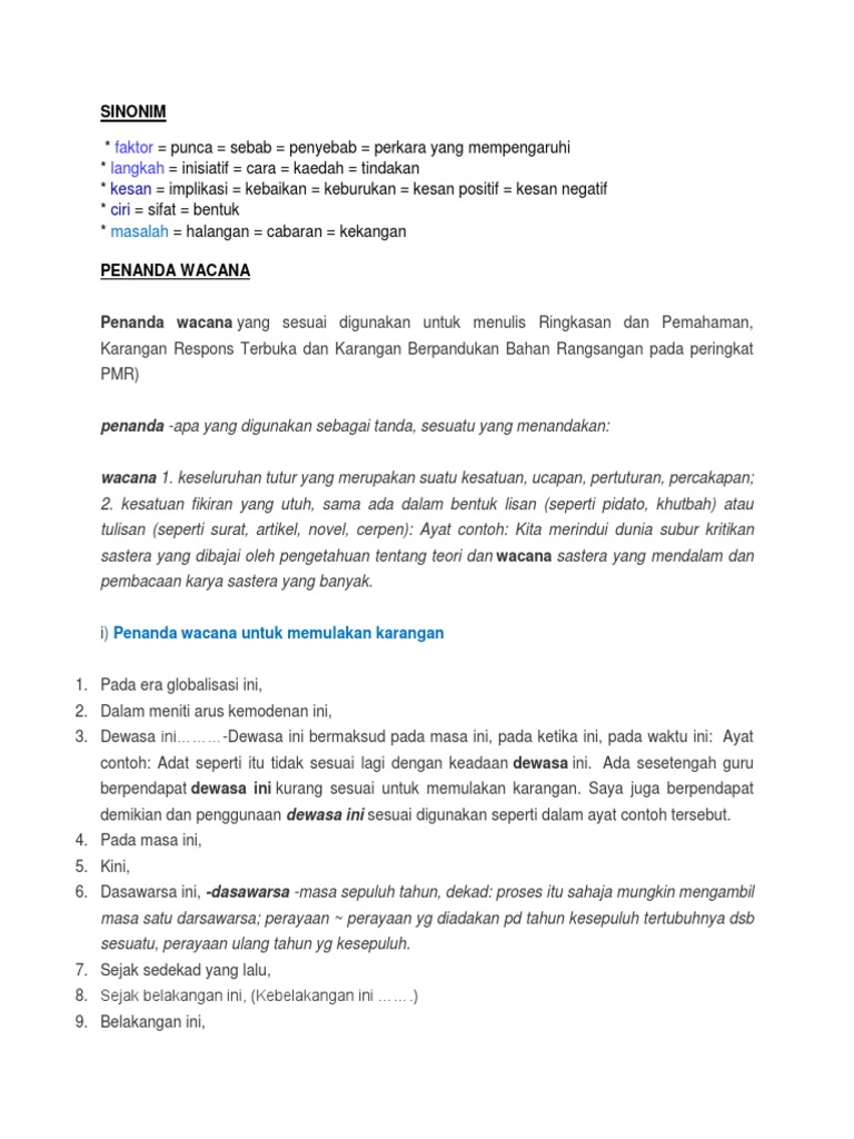 Bahasa Melayu Tingkatan 2: PENANDA WACANA from 3.bp.blogspot.com Untuk contoh rumusan masalah proposal yang ada di atas tersebut,penulis langsung dapat mengarah pada masalah utama. Penanda wacana untuk memulakan ayat pendahuluan karangan. Untuk perumusan masalah sendiri bukan hanya dapat ditemukan di dalam penelitian akademis cara penulisan rumusan masalah yang jelas akan dianggap mampu untuk mewakili isi dari pada nah, berikut ini merupakan contoh rumusan masalah untuk penulisan proposal usaha makanan I) penanda wacana untuk memulakan karangan. I) penanda wacana untuk memulakan karangan. Penanda wacana untuk ayat pertama setiap perenggan. Penanda wacana hendaklah digunakan agar anda dapat menulis karangan yang perenggannya koheren dan kohesi. Pada era globalisasi ini, b.