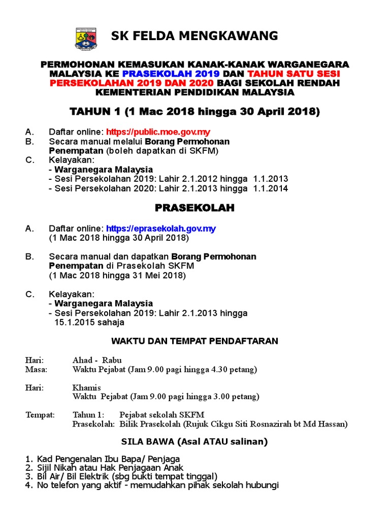 Bagi keputusan penempatan prasekolah yang tidak berjaya atau ingin diubah, rayuan penempatan prasekolah sesi 2019 boleh dimohon mulai 5 ogos hingga 20 ogos 2018. Perlu mengikuti langkah semakan seperti berikut. Public moe gov myall education. If public moe gov is up but you can't access the page, try one of the below solutions: .ke prasekolah kpm tahun 2022 dibuka bermula daripada 1 mac hingga 31 mei 2021 secara atas talian (online) di laman web kpm www.moe.gov.my.
