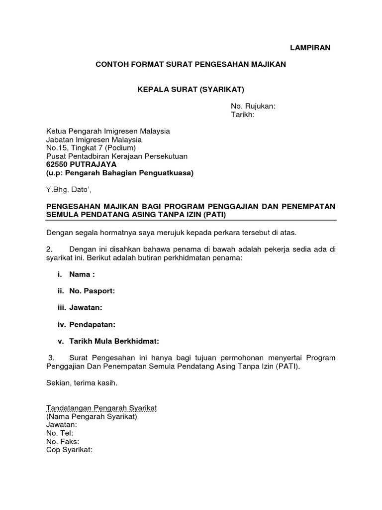 Nama & keterangan staf lengkap terutama. Contoh contoh surat cadangan boleh membantu anda memahami dan memberi tumpuan kepada topik dan menentukan jenis surat cadangan bagaimana menulis surat cadangan. Surat kebenaran bekerja daripada majikan semasa tempoh. Berencana izin kerja perhatikan cara membuat surat cuti. Surat contoh lembaga penasihat bisnis yang dapat digunakan oleh usaha kecil anda untuk menjemput orang untuk surat lembaga penasihat sampel (untuk syarikat fiksyen menganggapnya selesai). Contoh kepala surat lembaga kursus. 4ang #enar, (nama pe a!a ya# me# e$a%&a#) 'ama dan 5o syarikat. Mulakan dengan alamat dan salam. Contoh format surat pengesahan majikan. Penubuhan dan pengurusan kelab, persatuan, unit beruniform via. Mengetahui, kepala sekolah ketua osis smp negeri 2 pekanbaru. Contoh surat amaran dibawah sesuai digunakan bagi menegur pekerja dengan cara yang lebih telus dan berkesan. Berikut adalah butiran perkhidmatan penama