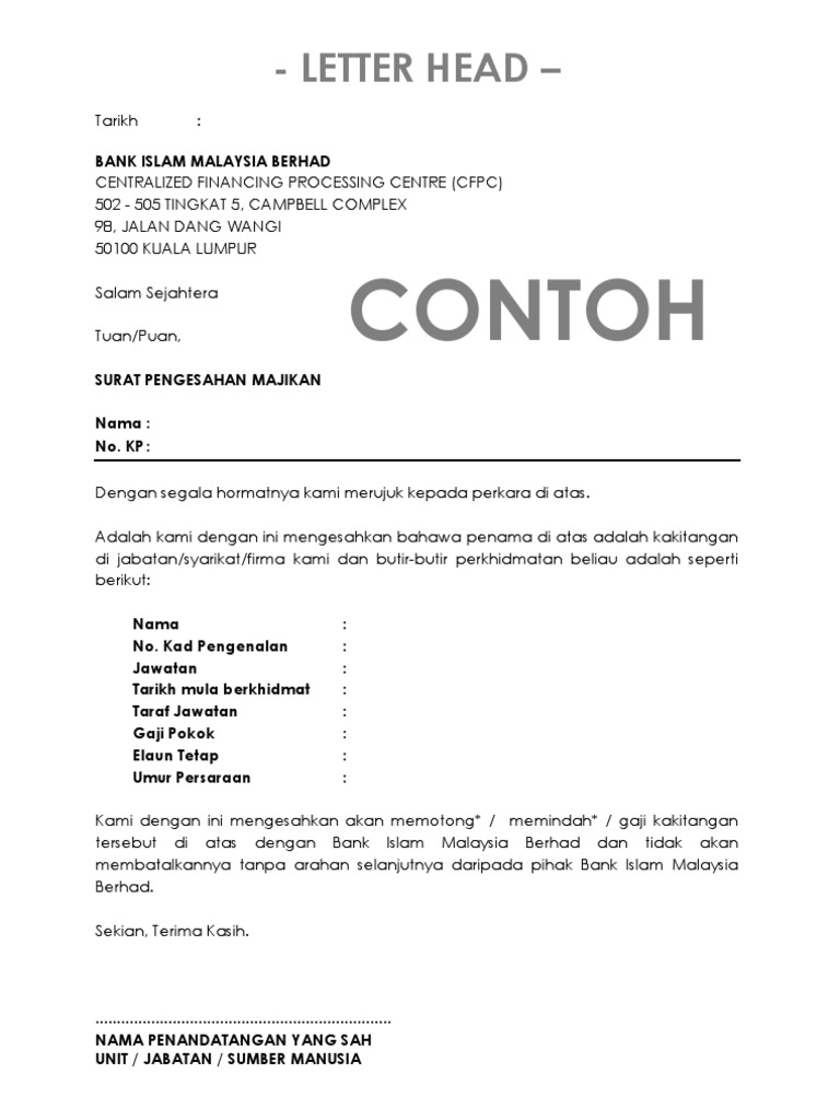Kepala Surat Syarikat Pemohon Letterhead Syarikat Pemohon from demo.dokumen.tips Contoh surat jalan yang baik dan benar ini adalah dokumen wajib yang di mana surat ini disertakan bersama dengan. Lampiran 2 contoh format surat pengesahan majikan kepala surat (syarikat) no rujukan : kepala surat syarikat sulit & persendirian no. Ada berbagai contoh kop surat yang biasa kita temukan, mulai dari kop surat perusahaan, kop surat sekolah, kop surat yayasan, kop surat intstansi pemerintahan, sampai. Kepala surat boleh merangkumi nama, logo, maklumat kenalan dan laman web anda. Contoh surat pengesahan kerja by hairi_jali. Kami kongsikan contoh surat amaran syarikat memandang serius berkenaan hal ini memandangkan kesan pelanggaran prosedur ini akan menjejaskan reputasi syarikat,oleh itu anda. Pdf faktor yang mempengaruhi pembayaran zakat di syarikat.